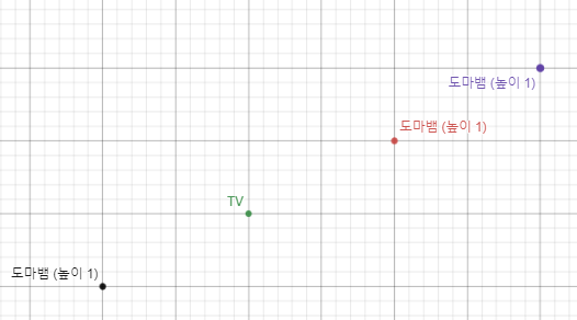 이제 같은 직선에 놓인 도마뱀들을 알 수 있다. 이제 이 도마뱀들과 TV까지의 거리순으로 정렬하여 ( 입력이 가까운 순으로 주어지지 않기 때문에) 높이들에 대해 LIS를 구해주면 된다.