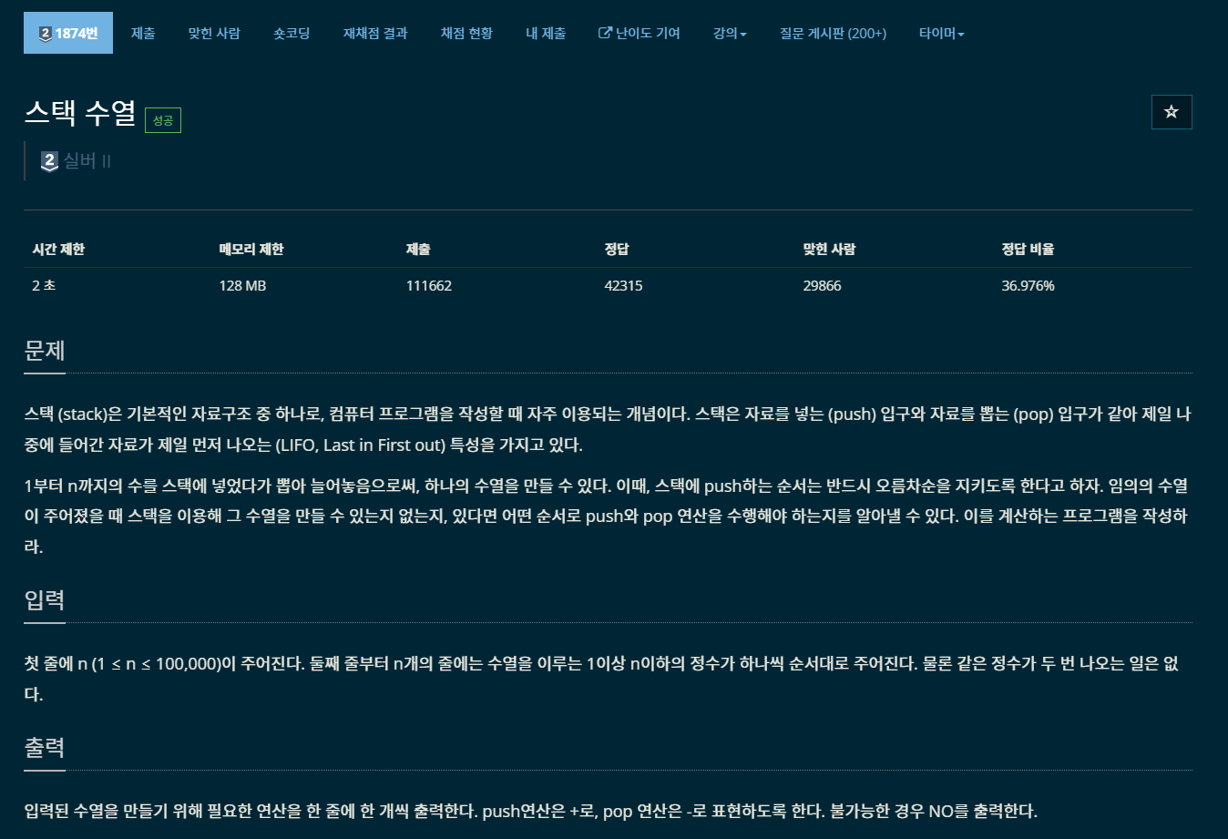 https://www.acmicpc.net/problem/1874
