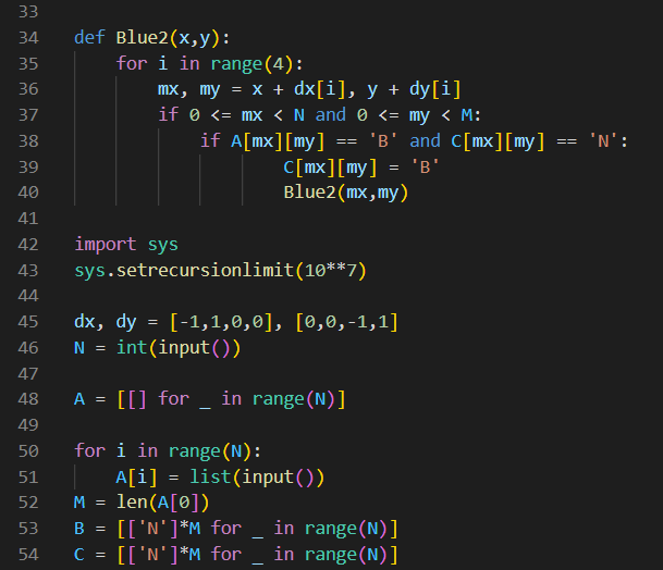 2) 적록색약일 때, 적록색약이 아닌 A 를 먼저 처리 한 후, 함수에 넣기 전에 A 의 'G' 를 모두 'R' 로 바꾼 후 함수 처리함.