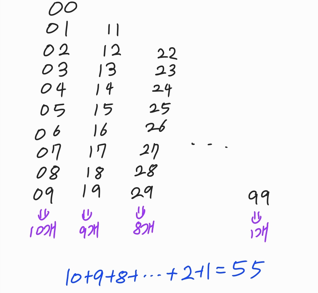 맨 앞 숫자가 0일때 55개