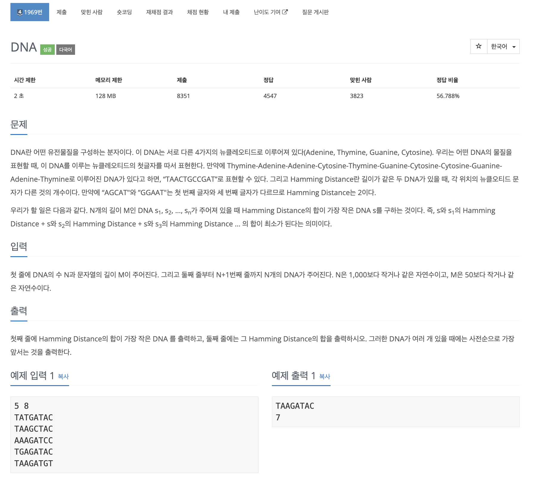 이때 DNA s를 구성하는데 사용되지 않은 물질은 Hamming distance를 발생한다.