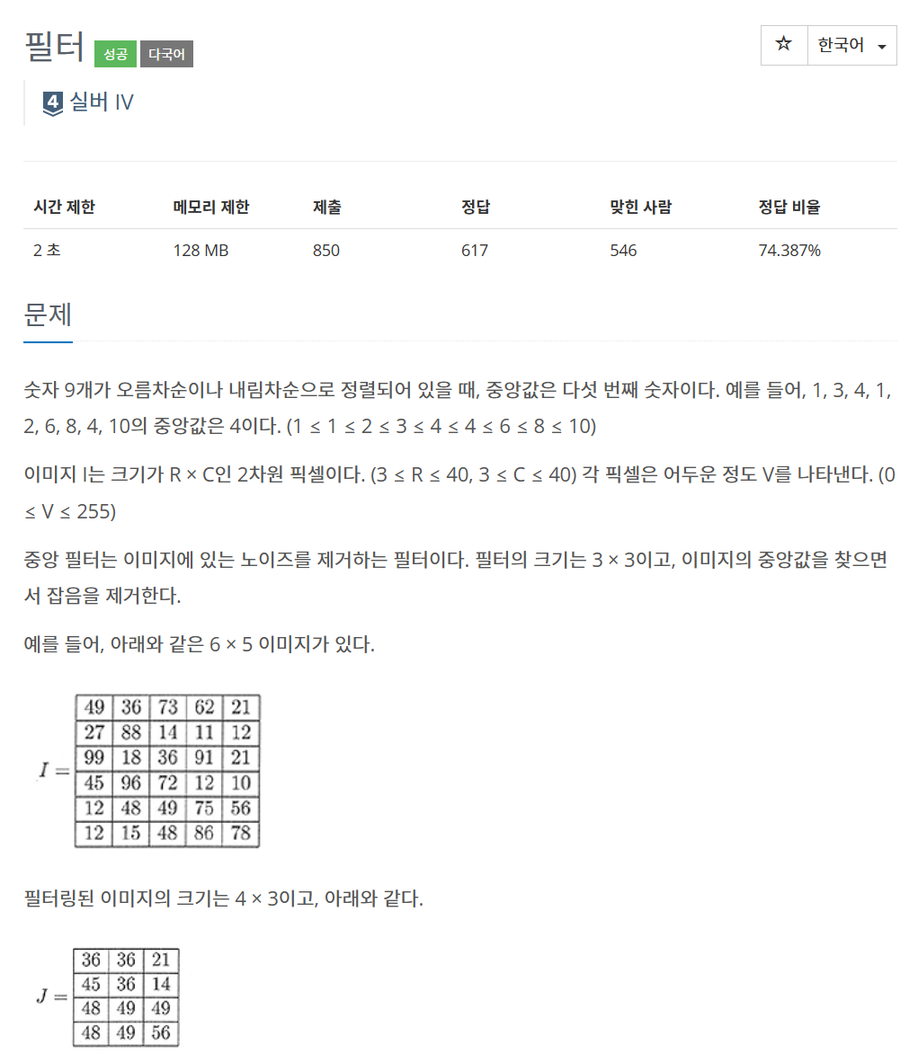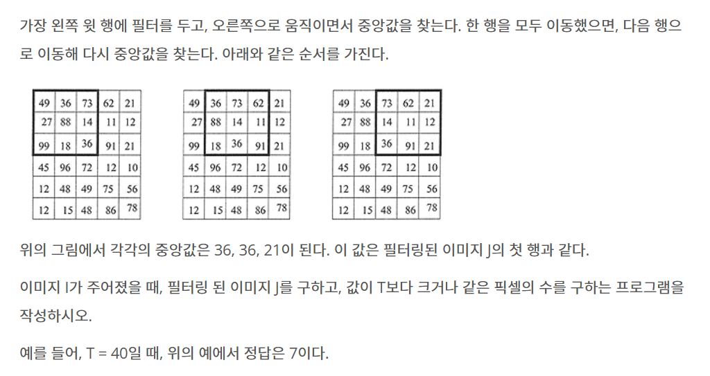- 이미지를 3x3 크기로 필터링 할 때 중앙값을 찾는 fun(i,j) 함수