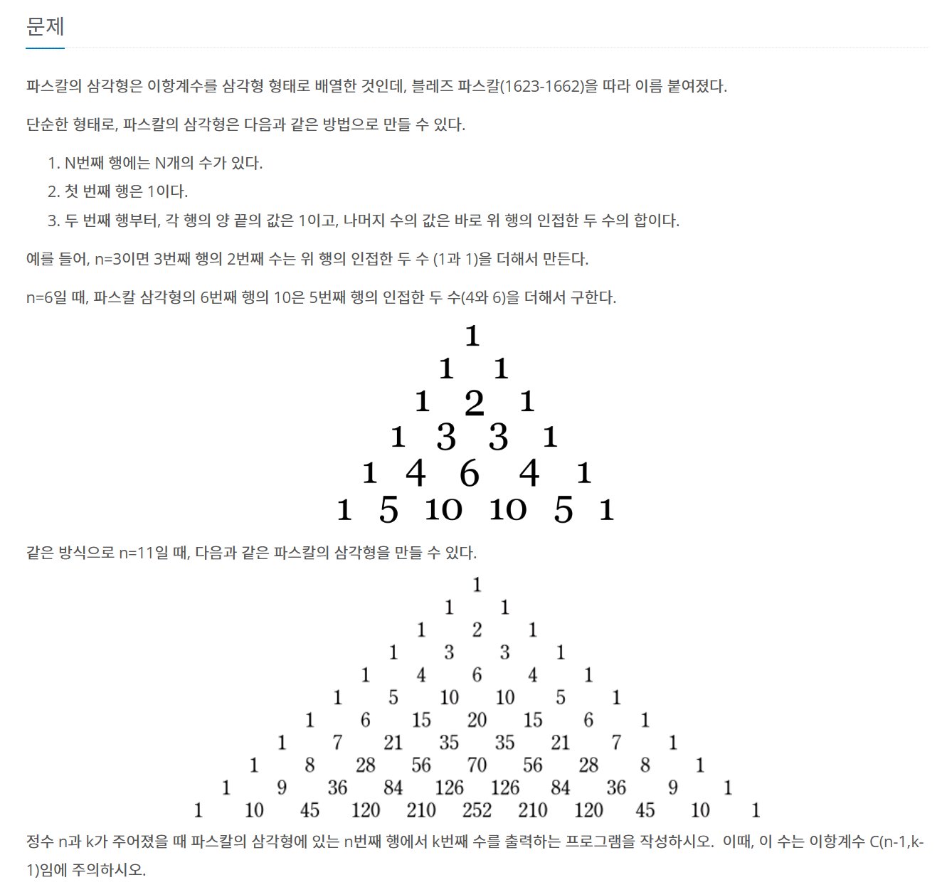 16395번: 파스칼의 삼각형 (acmicpc.net)
