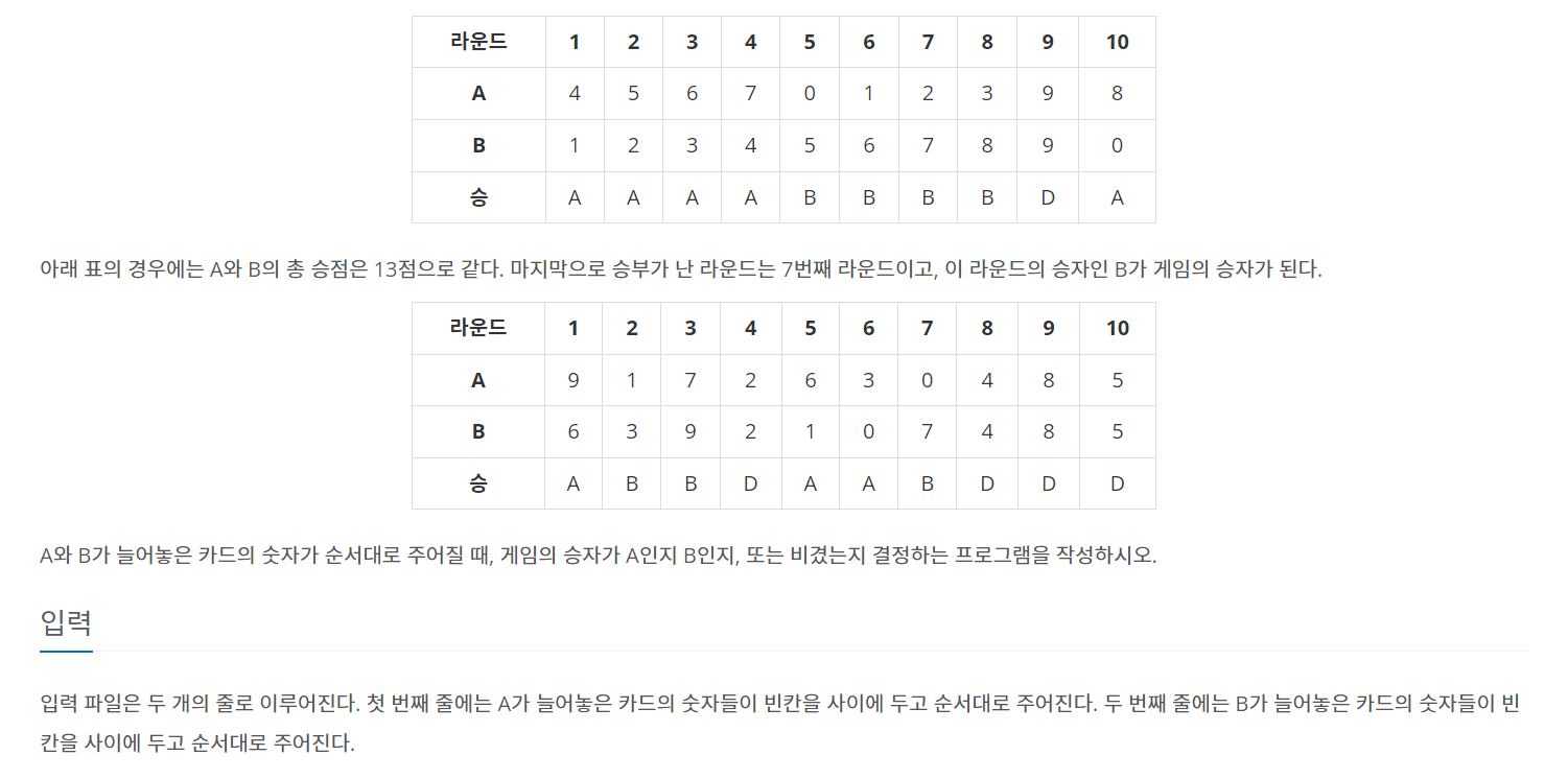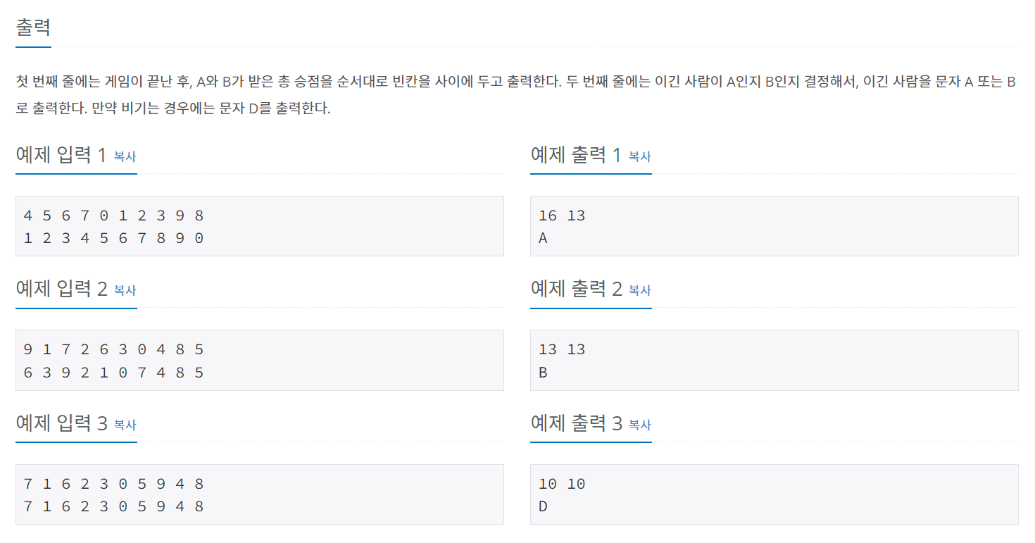 sum_a는 A의 최종 점수를, sum_b에는 B의 최종 점수를 저장한다.
