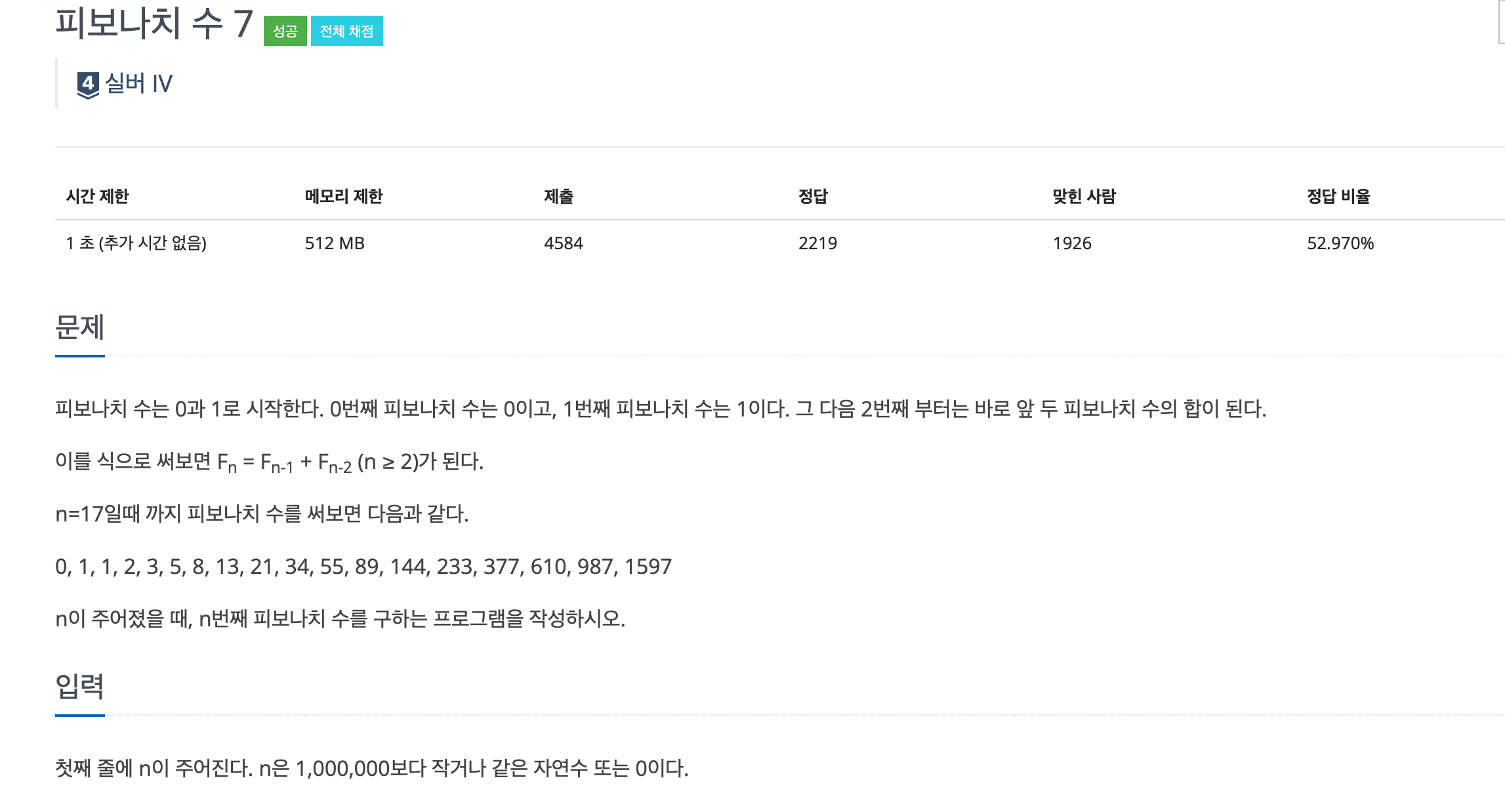 첫째 줄에 n번째 피보나치 수를 1,000,000,007으로 나눈 나머지를 출력한다.