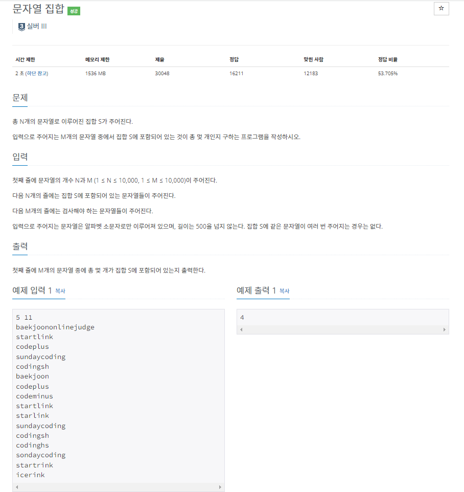 다움 n개의 줄에는 집합 arr에 들어갈 문자열들이므로 입력받아서 arr에 넣어준다
