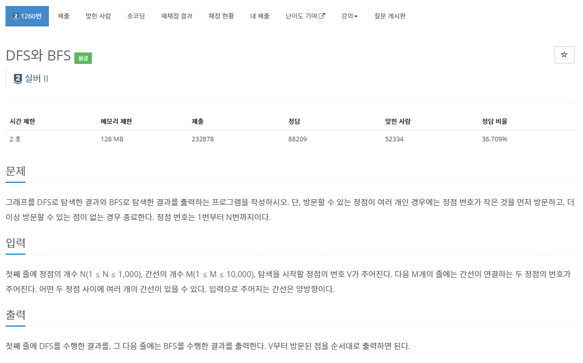 https://www.acmicpc.net/problem/1260
