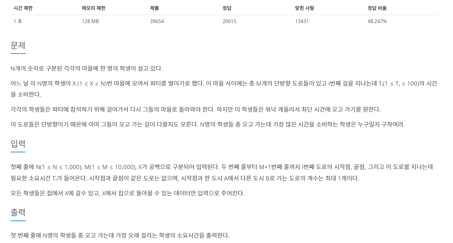 https://www.acmicpc.net/problem/1238