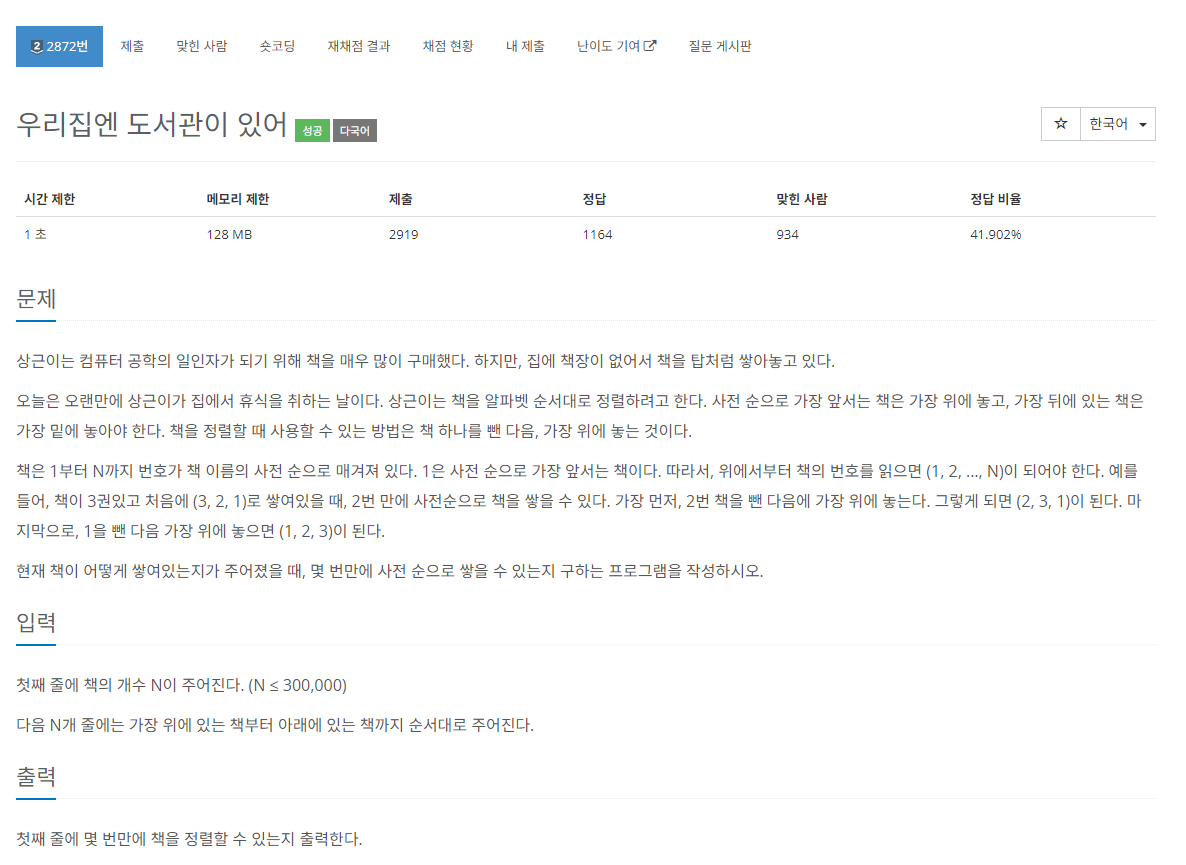 [백준 / C++] 2872번 우리집엔 도서관이 있어