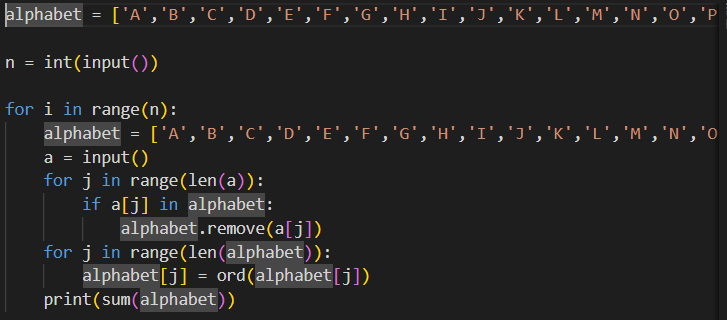 [백준/Python] 3059번: 등장하지 않는 문자의 합