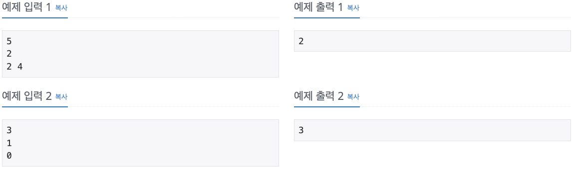 다음 줄에 M 개의 설치할 수 있는 가로등의 위치 x 가 주어진다. (0 ≤ x ≤ N)