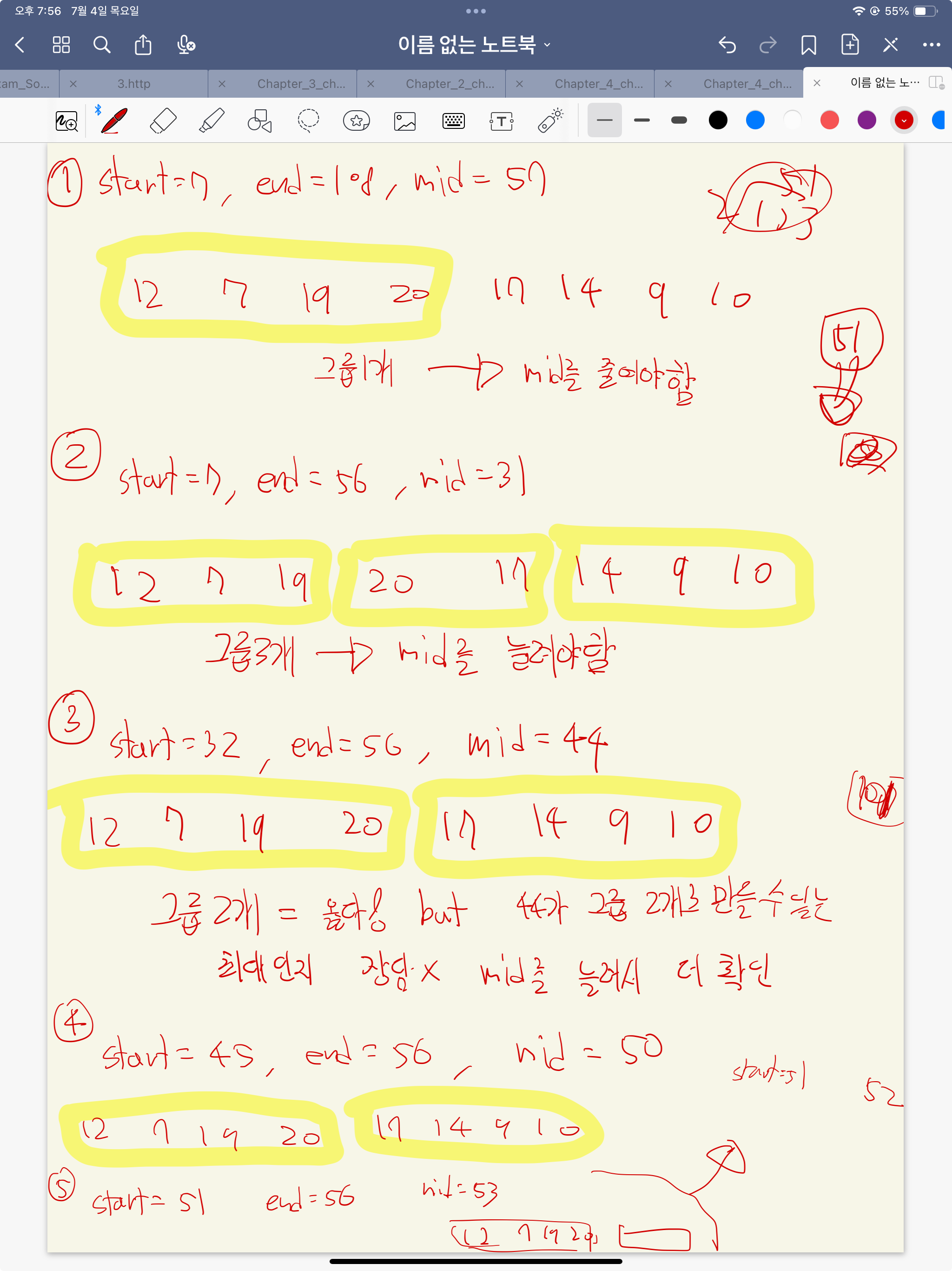 그러므로 right값을 mid-1로 바꾸고 다시 이진탐색을 한다.