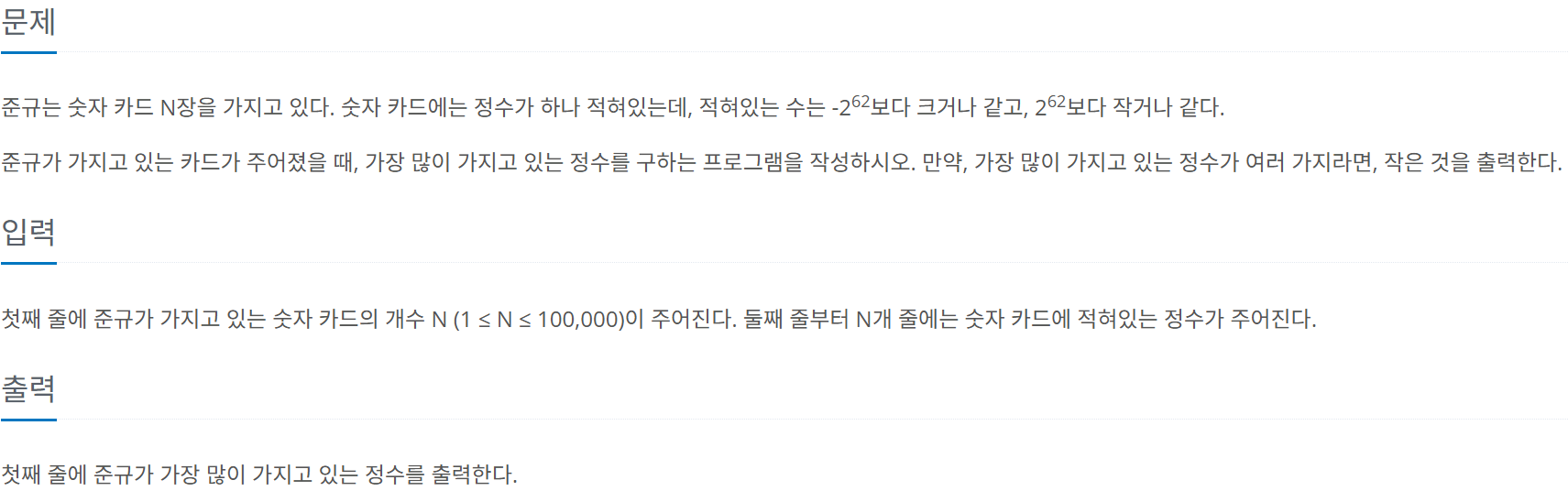 [백준/C++] 11652번: 카드