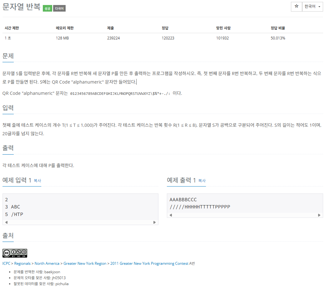 [백준/Python] 2675번 : 문자열 반복