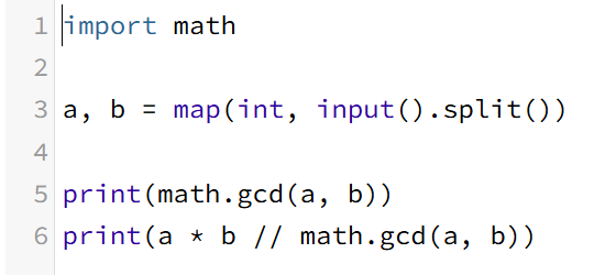 a, b의 최소공배수는 a * b / gcd(a, b)임을 이용한다