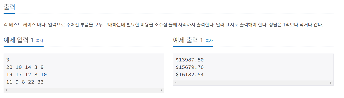 [백준/Python] 5361번 : 전투 드로이드 가격