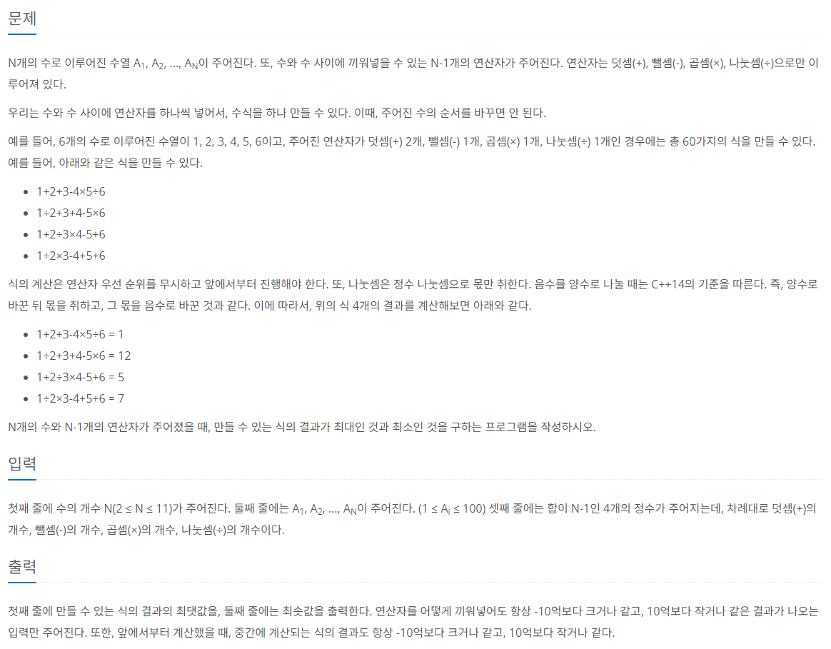 https://www.acmicpc.net/problem/14888