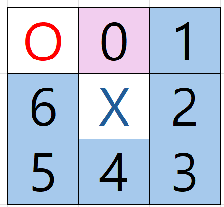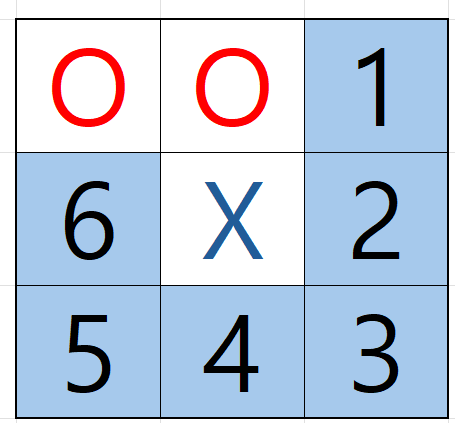 만약 현재 차례가 X이고, board의 상태가 아래와 같다면,