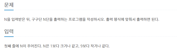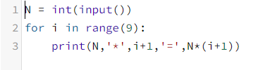 N을 입력받은 뒤, 구구단 N단을 출력하는 프로그램을 작성하시오. 출력 형식에 맞춰서 출력하면 된다.