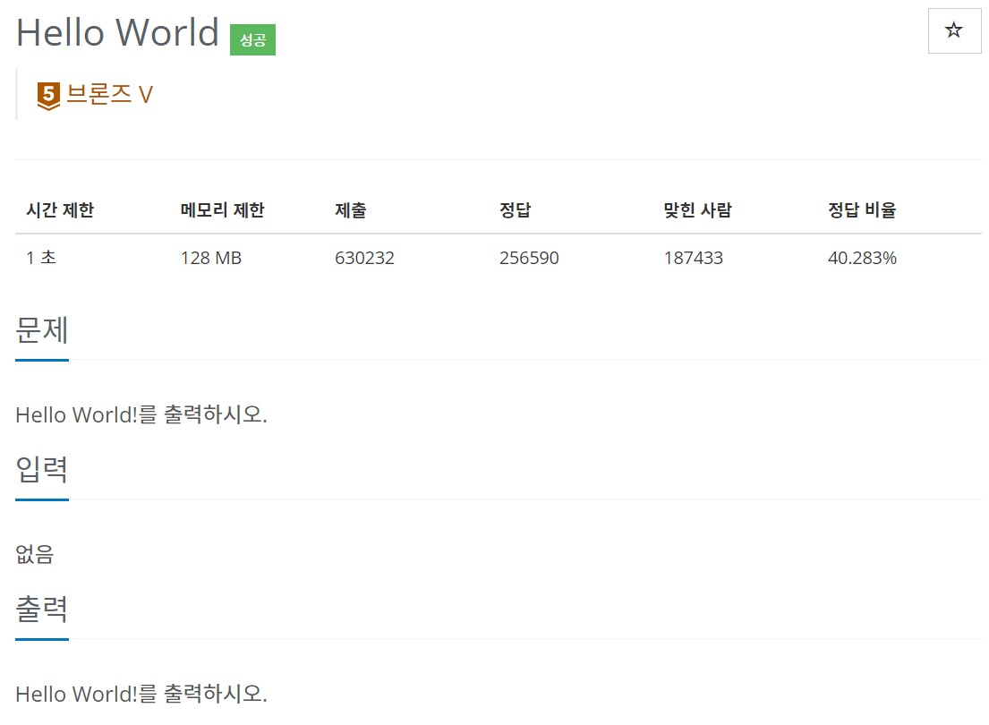 문제 제목은 Hello World이지만 Hello World!가 출력되기를 원하고 있다.