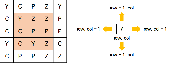 // (row, col)을 기준으로 최대 캔디를 계산