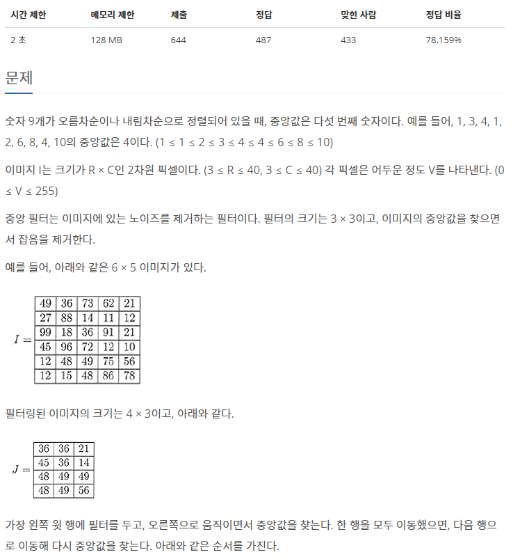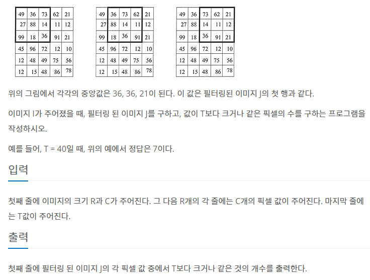 [백준 알고리즘] 백준 1895번 필터 파이썬(Python)
