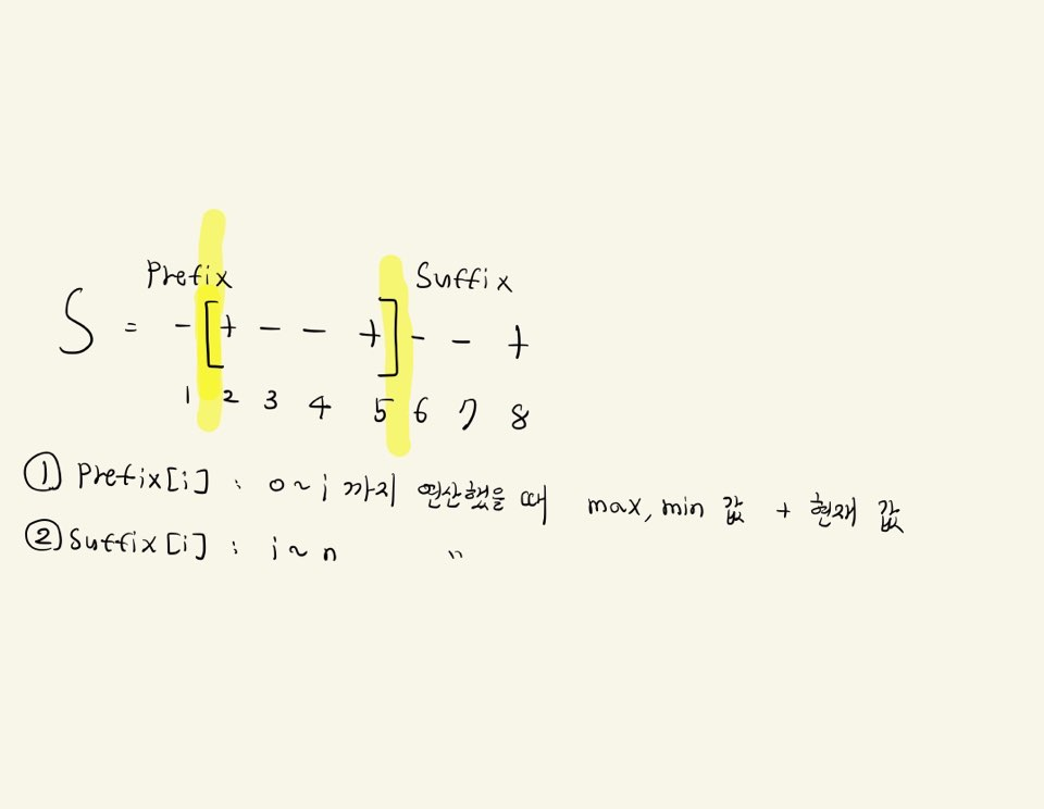 suffix [r+1]에서 min, max값을 prefix에서 구한 현재 값에 비교해 min, max값을 뽑으면 됩니다.