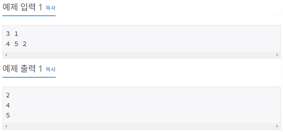 - arr의 크기가 입력 받은 m과 같다면 공백으로 구분해서 수열 출력