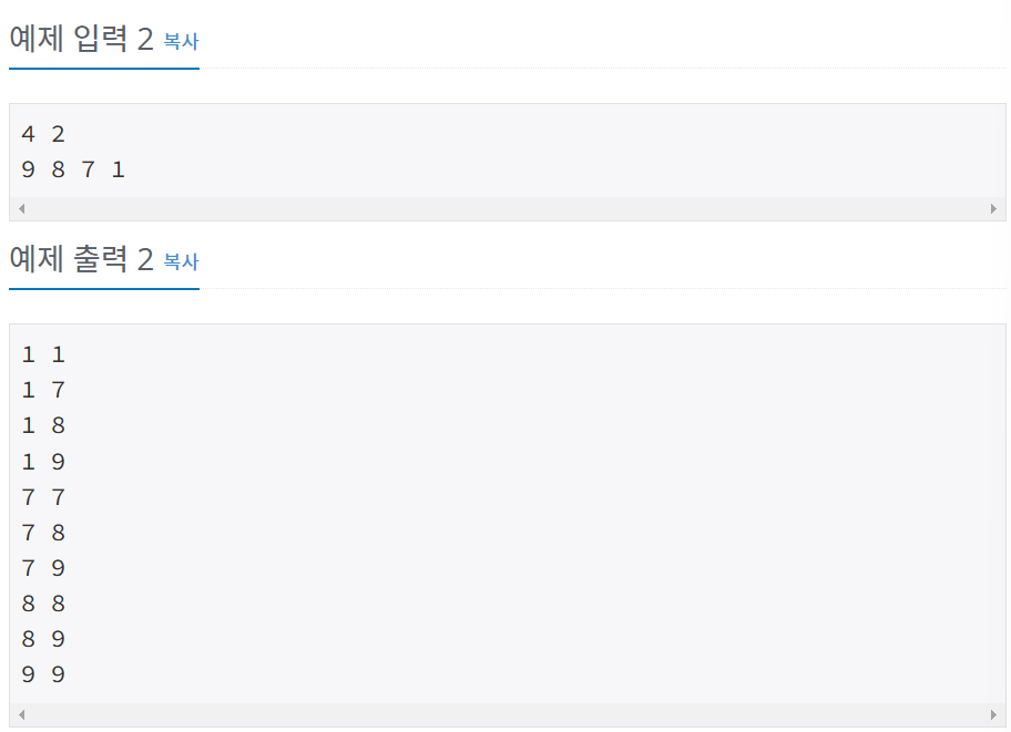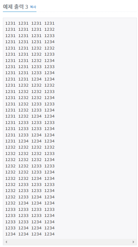 15657번: N과 M (8) (acmicpc.net)